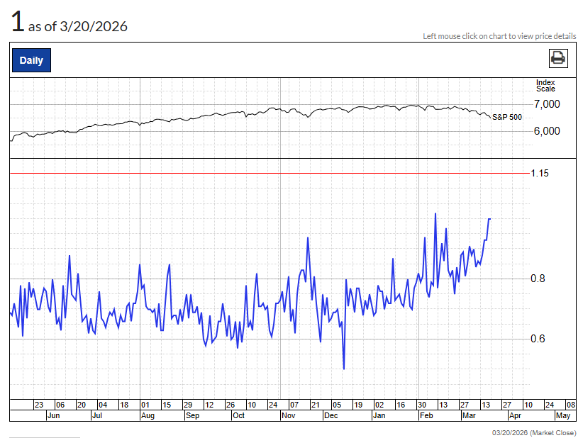 Put/call ratio (放空與作多比例)持續增加中. 如果下周反轉, 可能會有軋空的情況.