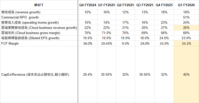 MSFT過去三季的雲端營收成長: 20%, 27%, 26%(最近一季)